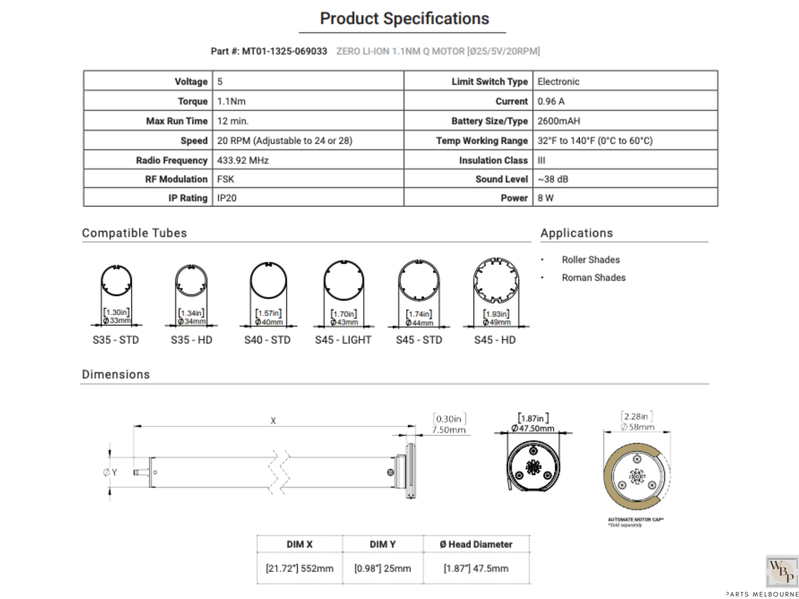 - Patented Motor Head Design