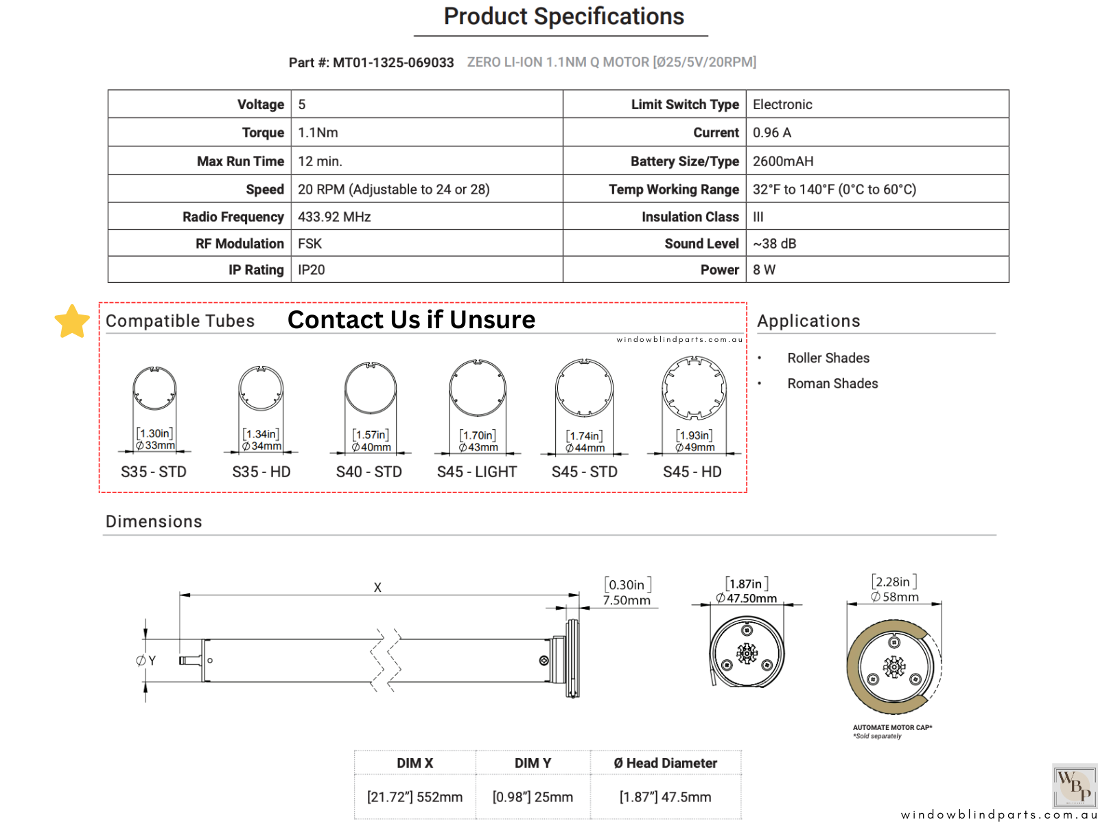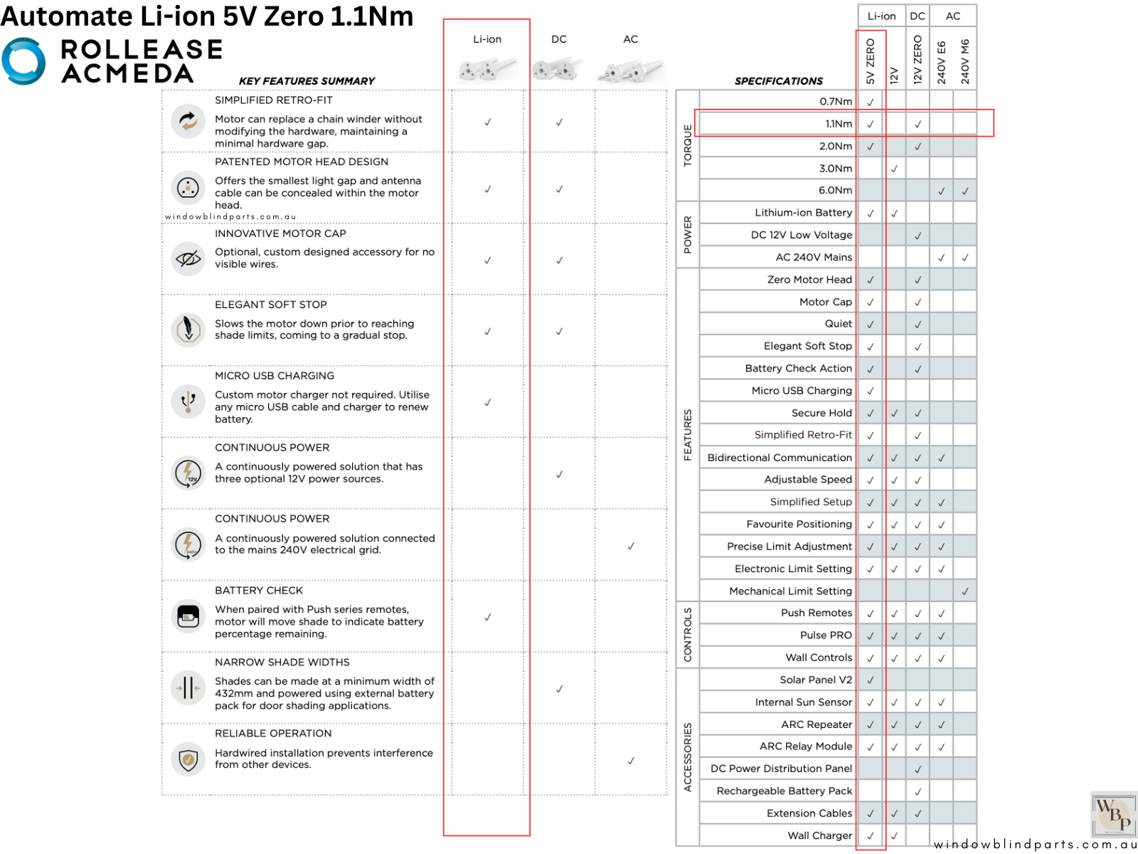 Acmeda Wireless 5V Re-Chargeable 1.1Nm 25mm Motor with Adapters for Roller Blinds