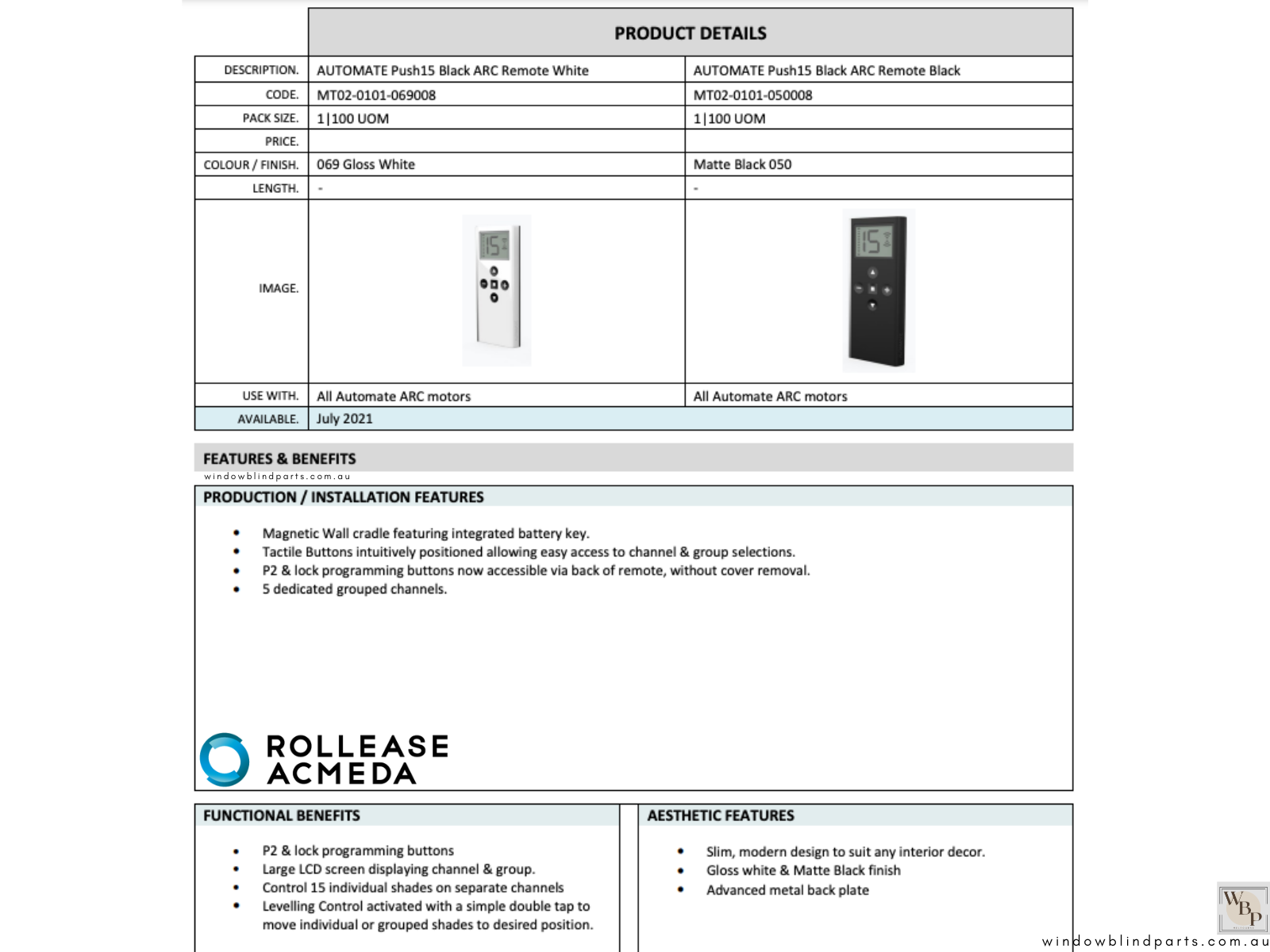Specified products are sourced directly from Rollease Acmeda Australia.