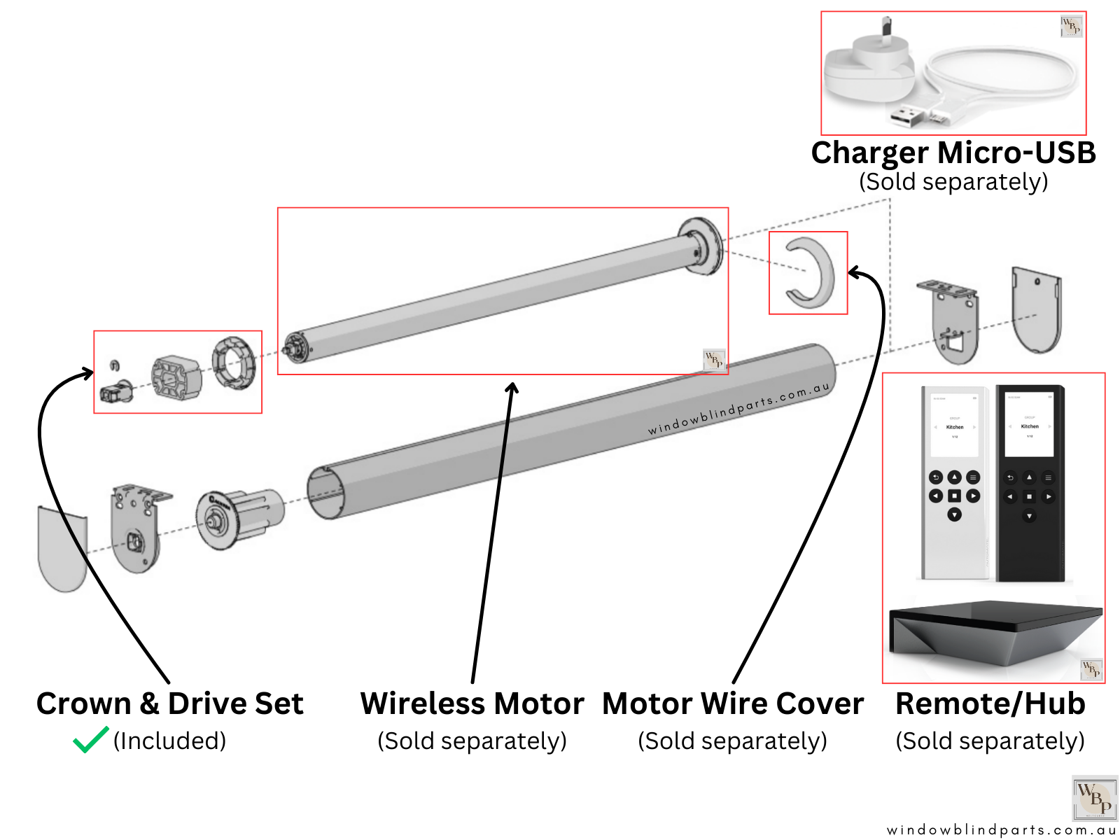 Genuine Acmeda Crown & Drive Set For 1.1Nm S40 (38mm Tubes) Battery Blind Motors