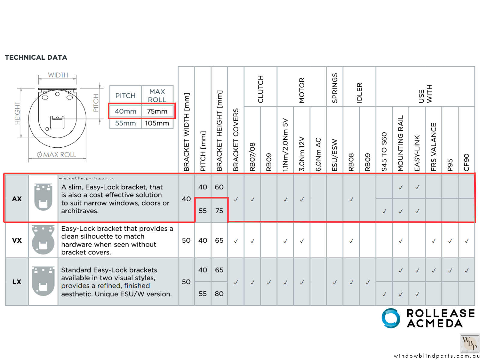 Genuine Acmeda RB08 & RB07 Roller Blinds Brackets, AX Slim Low Model
