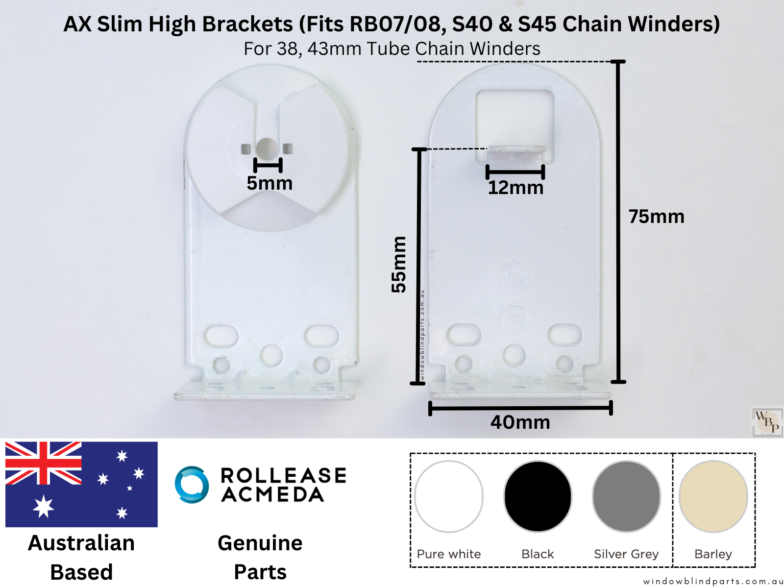 Genuine Acmeda RB08 & RB07, S40 & S45 Roller Blinds Brackets, AX Slim High Model