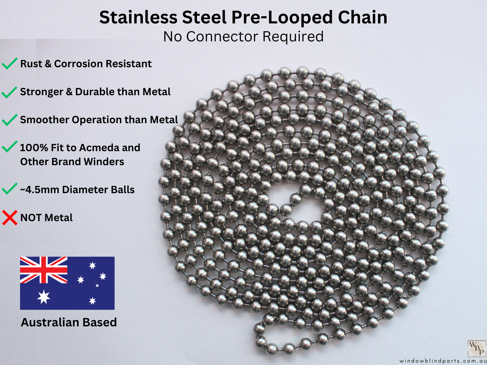 Roller Blind Chain Stainless Steel Pre Looped, No Joiners Required!